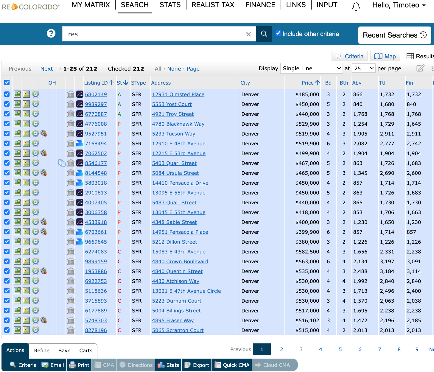 You will see all the properties check boxes checked (located on the left side of the results screen)