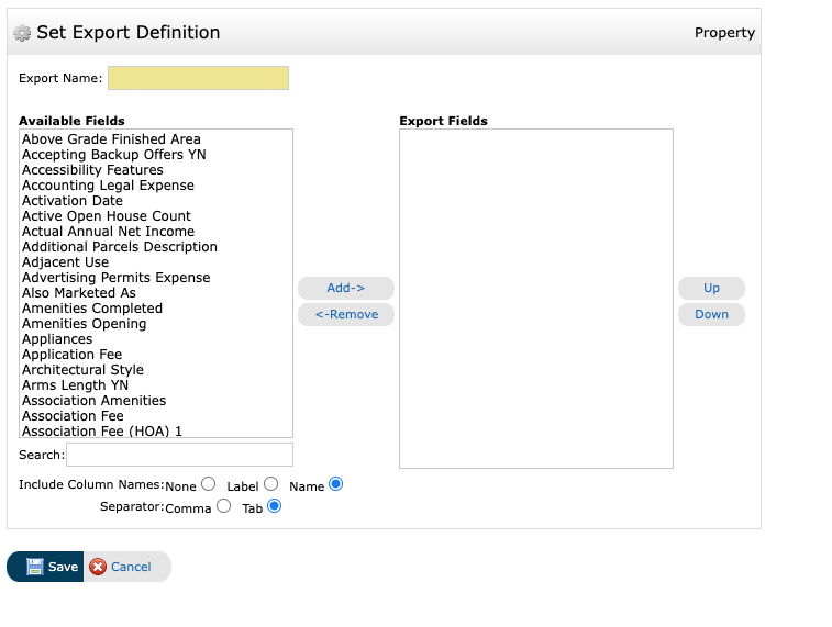Next, you will need to define the fields for the new Export format (also referred to as Export