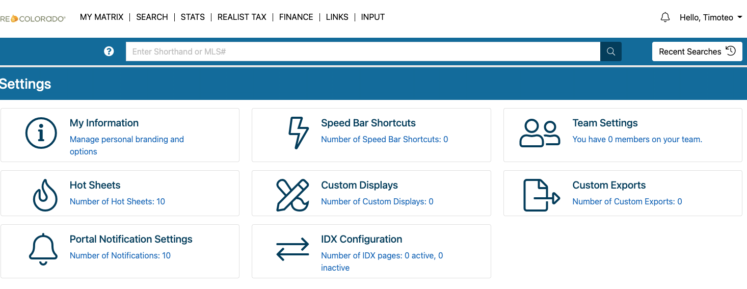- My Matrix -> Settings -> Custom Exports