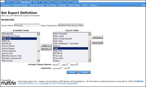 the “Add Export” button to create your Export Format. You will see a screen similar to that shown