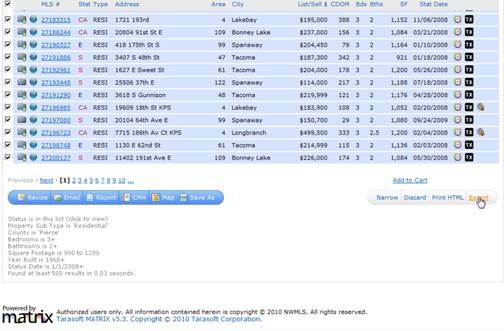 Now you are ready to download the results. To download the results, select the ‘Export’ button (as shown below.