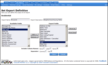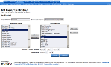 select the following menu items: My Matrix->Settings->Custom Exports.