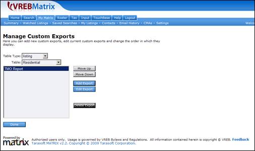 Before you can export data, you must first setup the Export format. This is a one time action that you will need to do. The format must be setup exactly as shown in this section for the Buying Pattern application to understand the format. To create your export format, select the following menu items: My MatrixgSettingsgCustom Exports.