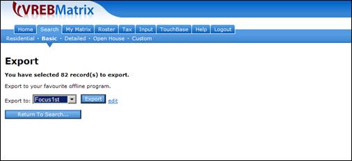 In selecting data from the Matrix MLS, be sure to select the options below: