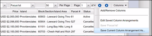 using the “Columns” drop down menu and selecting the “Save Current Column