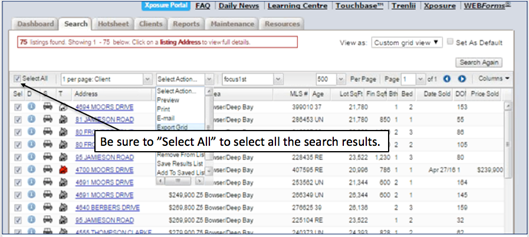 you will want to be sure that all your search results have been selected. To do so select the “Select All” box which