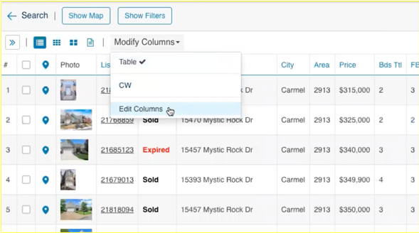“View Results” button. Once on the results page click Modify Columns> Edit
