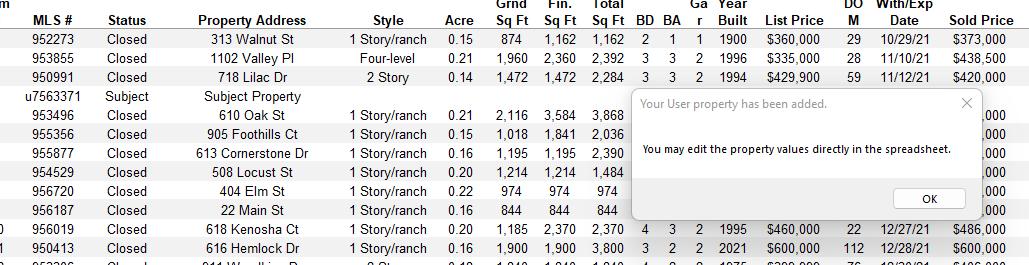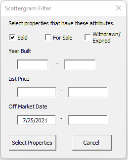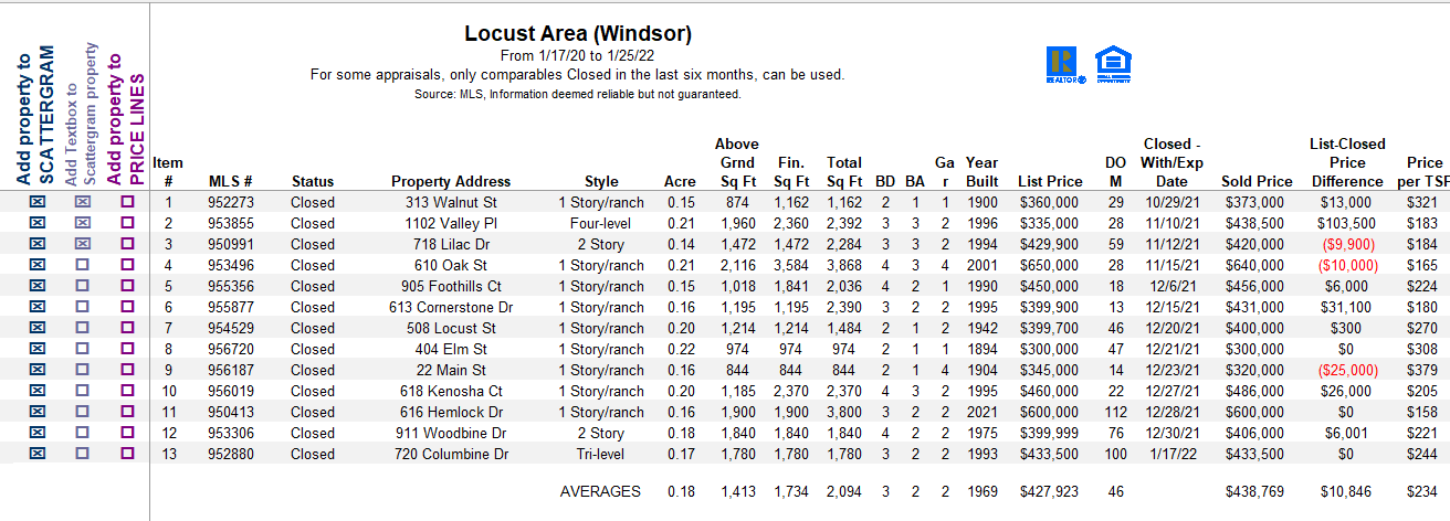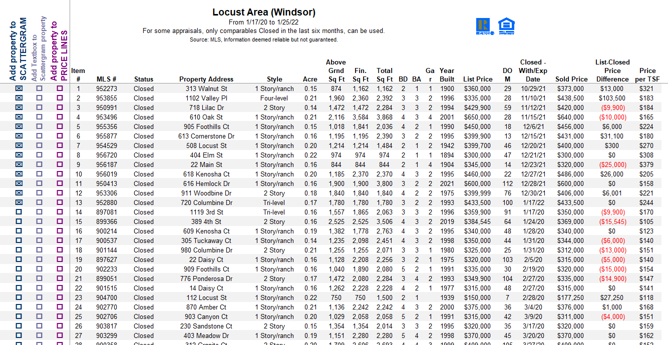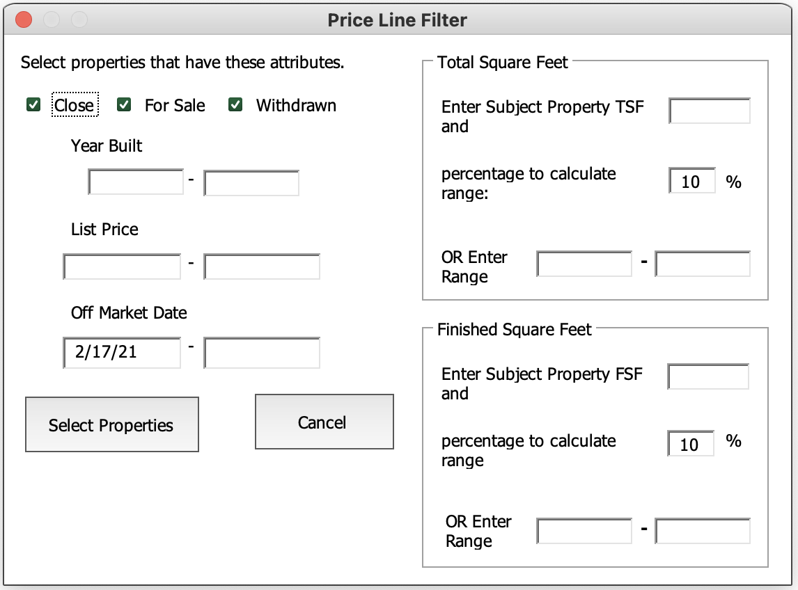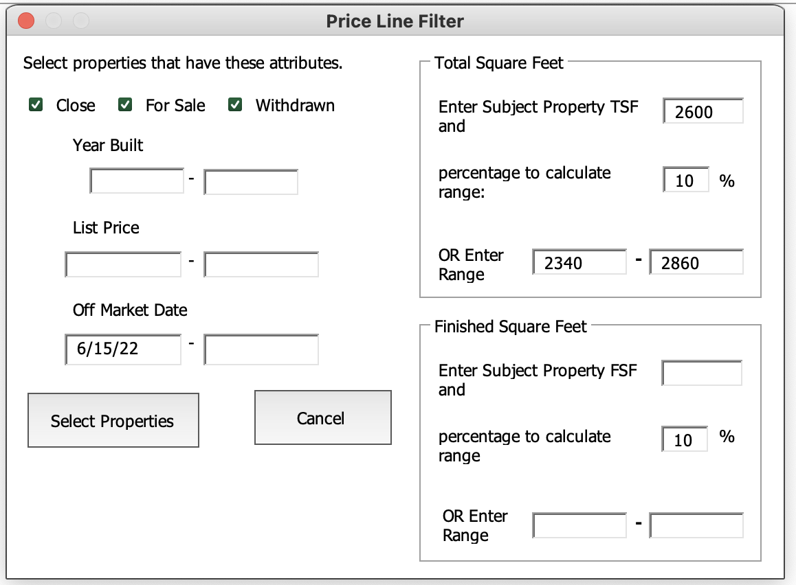 The Priceline selection tool combined with the MLS Data sheet can help you select