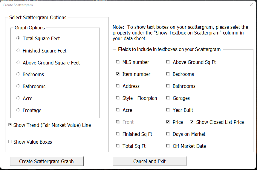 When you've selected a property under the "Add properties to Scattergram" column, that property will be